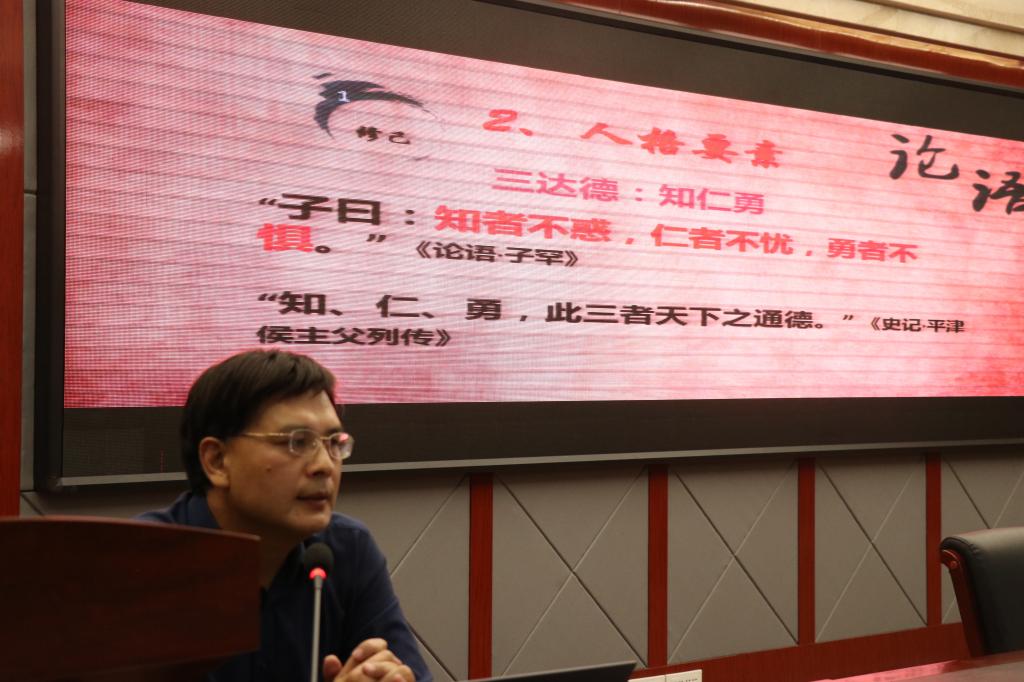 陆卫明教授讲座内容从“修己、孝悌、处世、交友”四个方面深入浅出的为学员解读了《论语》中蕴含的为人之道,整场讲座理论深刻、内容丰富,在场员工深受教育和启发。