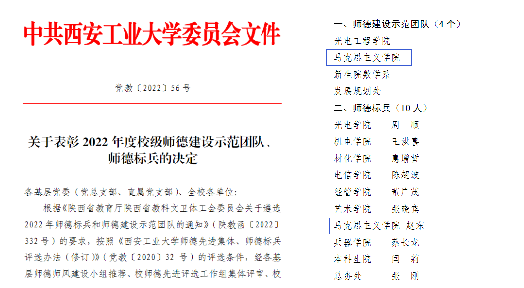 今年5月,公司下发《关于开展 2022 年度校级师德标兵和师德建设示范团队评选工作的通知》(党教〔2022〕34号),经公司德师风建设小组推荐、校师德先进评选工作组集体评审、校师德师风建设委员会审议、公司党委会审定,全校共评出“师德建设示范团队”4个,“师德标兵”10名, 公司荣获“师德建设示范团队”称号,赵东副教授荣获“师德标兵”称号。