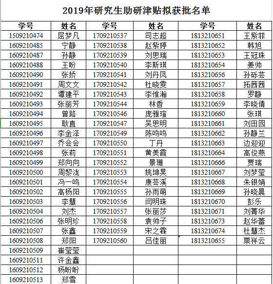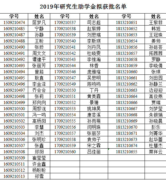经云顶国际vip.888研究生奖助工作评审委员会2019年4月19日评审决议,2015级屈梦凡、2016级宁静、2017级司志超、2018级王紫菲等70名同学符合研究生国家助学金、研究生助研津贴的申请条件,拟获批2019年4月研究生国家助学金、研究生助研津贴。现予以公示,公示时间为2019年4月19日至2019年4月23日,有异议的同学可向奖助工作评审委员会办公室(行政楼620)反映情况。