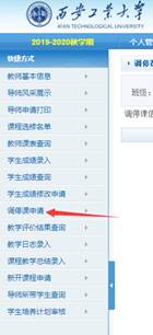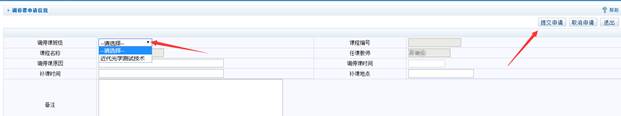 6、选择调课班级课程名称,填写调课和补课时间地点等,并“提交申请”。
