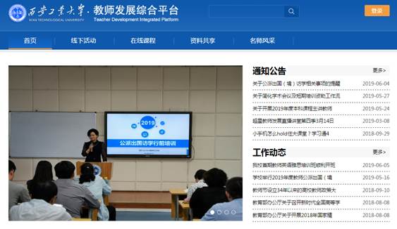 1. 进入教师发展综合平台。输入网http://xatu.ctld.chaoxing.com/portal或通过党委教师工作部网站点击左侧“教师发展综合平台” 进入平台。