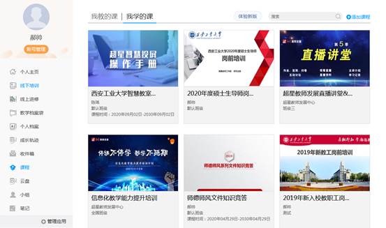 4. 进入个人空间。点击右上角“个人空间”,选择“课程”;