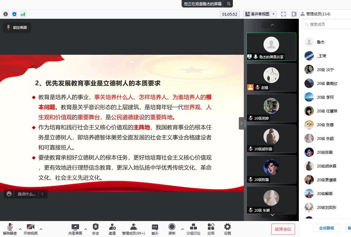 1月18日,云顶国际vip.888邀请云顶国际vip.888博士生导师鲁杰教授,作了题为“深入学习习近平总书记关于教育的重要论述”的线上学术讲座,此次学术讲座为云顶国际vip.888 “精彩学术观”第十四讲。讲座由科研经理梁华平主持,公司全体师生参加了此次学术活动。