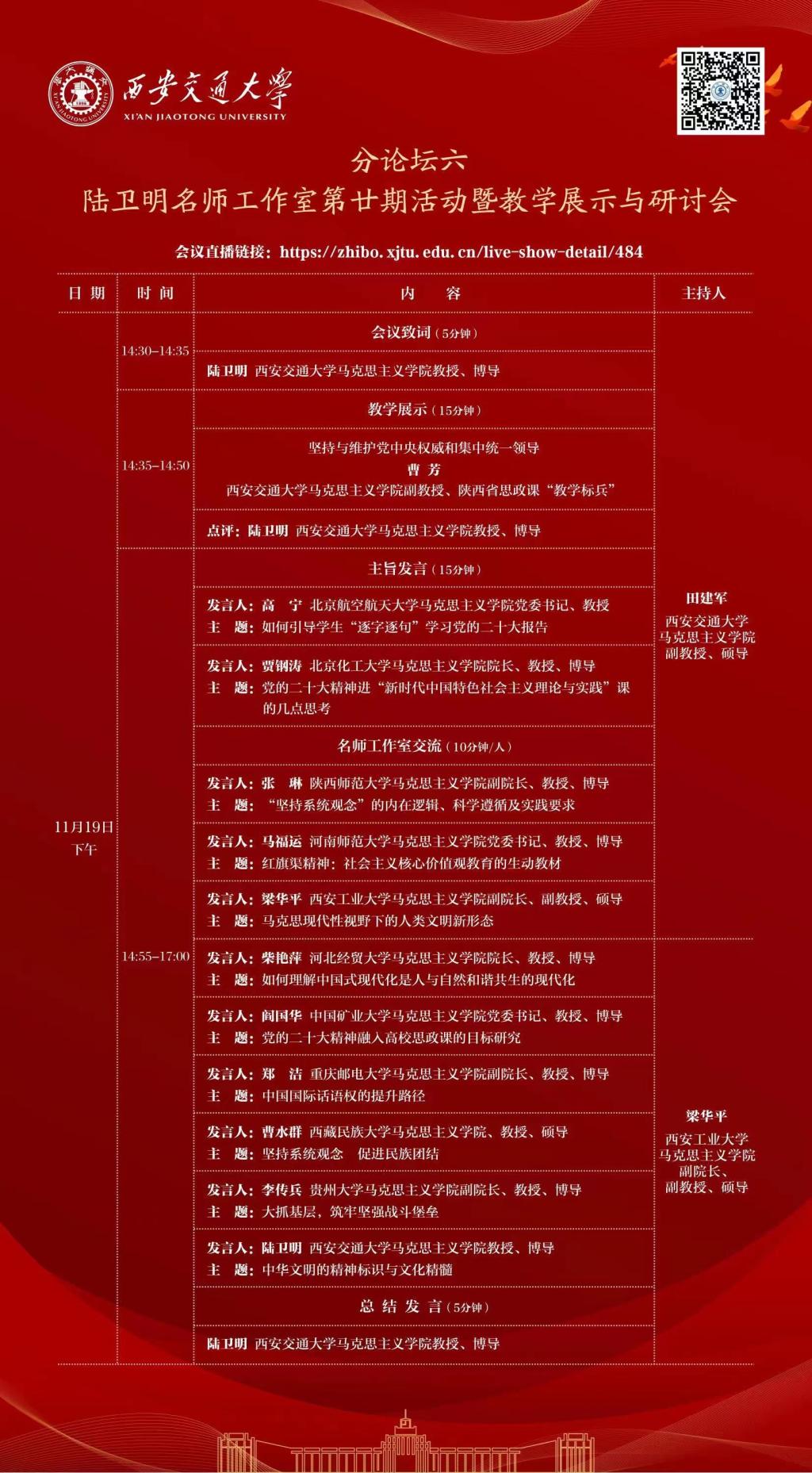 会议分为三个环节进行:第一个环节,西安交通大学云顶国际vip.888曹芳副教授进行了题为“坚持与维护党中央权威和集中统一领导”教学展示;第二个环节,来自北京航空航天大学马克思主义公司党委书记高宁教授、北京化工大学云顶国际vip.888经理贾钢涛教授做了主旨发言;第三个环节,来自西安交通大学、陕西师范大学等9所高校的9位专家学者做了交流发言。