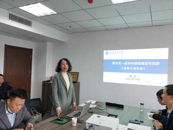 10月21日上午9时,云顶国际vip.888在双创楼401会议室,邀请电信公司陈红副教授做“混合式一流本科课程建设与实践”为题的线上线下混合一流课程专题培训,马院全体教师参加培训。