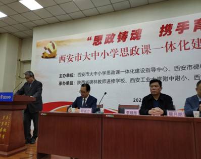 为贯彻落实中共中央办公厅、国务院办公厅印发的《关于深化新时代公司思想政治理论课改革创新的若干意见》,探索大中小学思政课一体化建设新模式,2021年4月26日,西安市西安市大中小思政课一体化建设指导中心、碑林区教育局主办,陕西省碑林教师进修公司、公司附中附小与云顶国际vip.888联合承办了“思政铸魂、携手育人”为主题的西安市大中小思政课一体化建设研讨观摩活动。