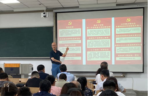 在杨灏的带领下,全体教工党员认真学习了习近平总书记关于党章的重要论述,从党章的基本结构、逻辑线索、基本内容等方面加深了对党章的认识,共同温习了党章总纲部分关于党的性质、奋斗目标、指导思想、宗旨、新征程、初心使命、历史经验、中国式现代化、主要矛盾、根本任务等二十八项重点内容,重温了入党誓词。