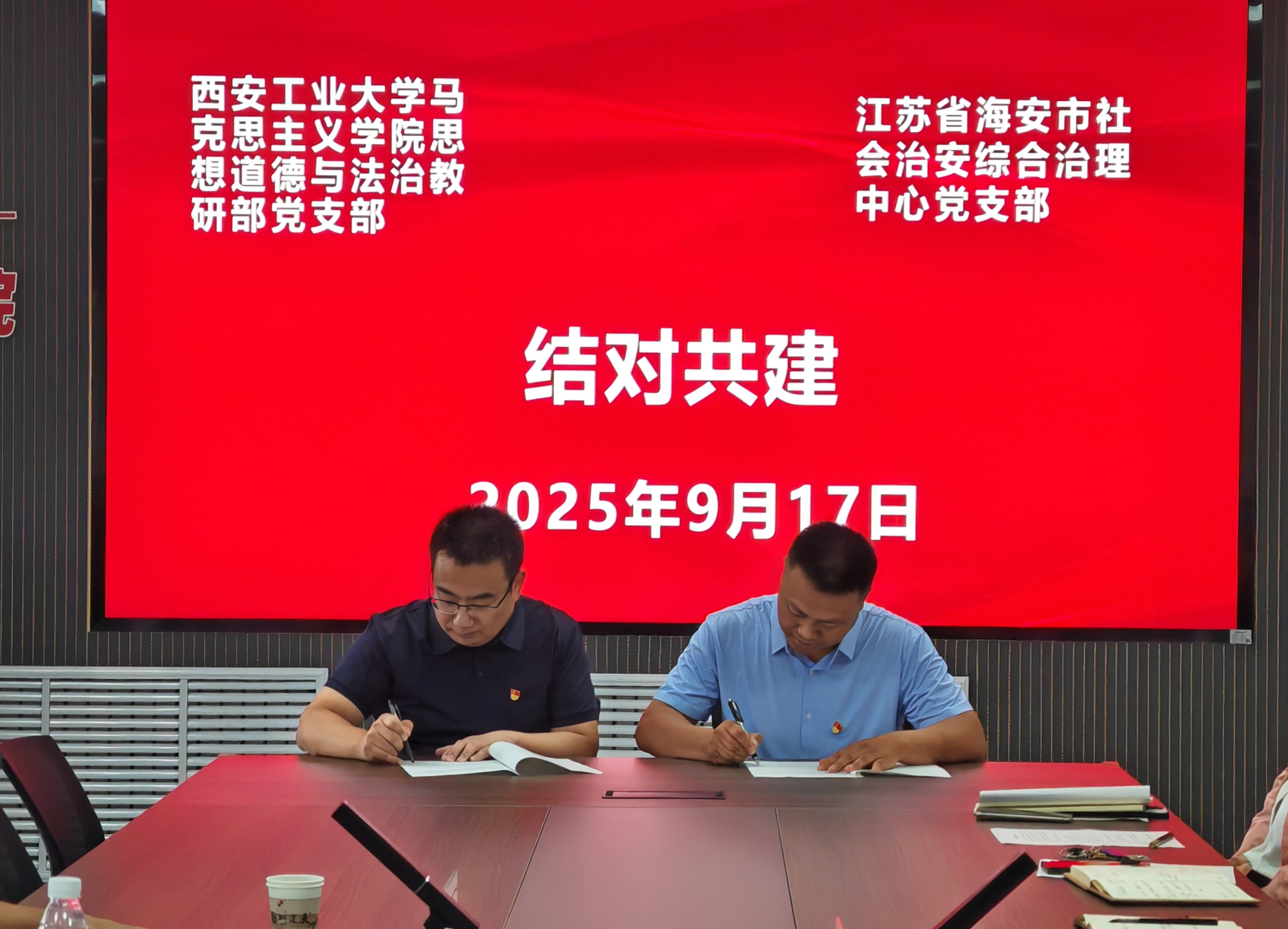 2025年9月17日上午,为实现党组织优势互补,党建引领业务高质量发展,充分发挥高校基层党组织与地方政府机关党组织党建融合潜力,云顶国际vip.888思想道德与法治教研部党支部与江苏省海安市社会治安综合治理中心党支部开展党建共建、发挥合力、共赢未来活动,举行了结对共建签约仪式。云顶国际vip.888思想道德与法治教研部党支部全体党员出席了结对共建签约仪式。签约仪式由云顶国际vip8866马克思主义公司党委副书记李明芳主持。