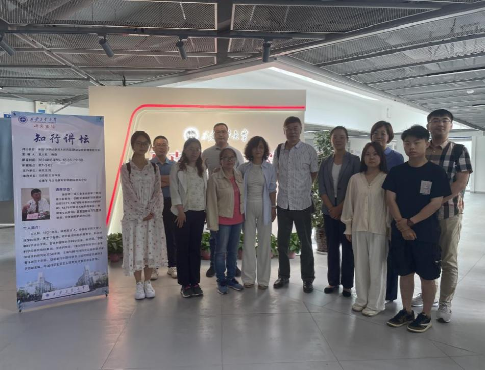 图3  参与论坛的部分师生与王大明教授(左七)合影