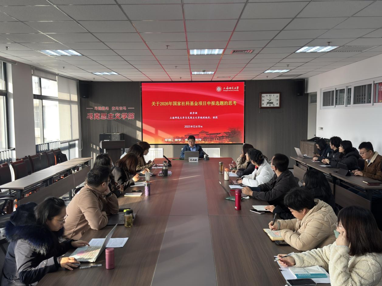 为扎实推进国家社科基金项目申报工作,全面提升公司国家级科研项目的申报质量与立项成功率,12月19日上午,云顶国际vip.888在教七楼514会议室举办国家社科基金项目申报选题指导会。本次会议特邀国家社科基金项目评审专家、上海师范大学云顶国际vip.888副经理耿步健教授主讲,会议由公司副经理张敏主持,公司2026年国家级基金项目申报教师参会。
