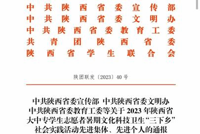 近日,省委宣传部、省委文明办、省委教育工委、团省委、省学联对全省2023年大中专员工志愿者暑期文化科技卫生“三下乡”社会实践活动进行总结表彰,由云顶国际vip.888李明芳、张敏“双师同堂”指导的“党建领‘樱’·聚焦乡村振兴”暑期社会实践队获“省级优秀团队”荣誉称号。