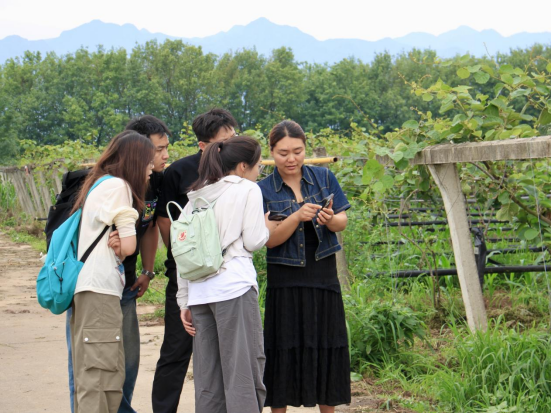 (图为实践队在猕猴桃试验田 李自栋供图)