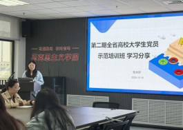 在第二期全省高校老员工党员示范培训班学习分享环节,2023级的张永珍同学生动讲述培训期间的经历与收获。结合延安之行的所见所感,她表示,通过课程学习与实践体验,能够将书本中的“延安精神”转化为砥砺前行的动力与“不负人民”的信念,并号召同学们在服务人民中绽放青春光彩。