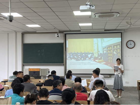 会议首先学习了《习近平在文化传承发展座谈会上强调 担负起新的文化使命 努力建设中华民族现代文明》。会议指出,习近平6月2日在北京出席文化传承发展座谈会并发表重要讲话,强调在新的起点上继续推动文化繁荣、建设文化强国、建设中华民族现代文明,是我们在新时代新的文化使命。要坚定文化自信、担当使命、奋发有为,共同努力创造属于我们这个时代的新文化,建设中华民族现代文明。会议强调,习近平总书记的重要讲话,着眼于强国建设、民族复兴,立足于赓续中华文脉、建设现代文明,对中华文化传承发展的一系列重大理论和现实问题作了深入系统阐述,是建设中华民族现代文明和社会主义文化强国的行动指南,必将对中国特色社会主义文化建设产生重大而深远的影响。要把思想和行动统一到习近平总书记重要讲话精神上来,深刻把握中华文明的突出特性,深刻把握“两个结合”的重大意义,深刻把握更好担负起新的文化使命,坚持马克思主义中国化时代化,传承发展中华优秀传统文化,促进外来文化本土化,不断培育和创造新时代中国特色社会主义文化。习近平总书记关于文化建设的新思想新观点新论断,是新时代党领导文化建设实践经验的理论总结,是我们党强烈文化担当和高度文化自信的集中体现,是推进文化传承发展和繁荣兴盛的根本指针,云顶国际vip.888要精心组织学习宣传,深化研究阐释。