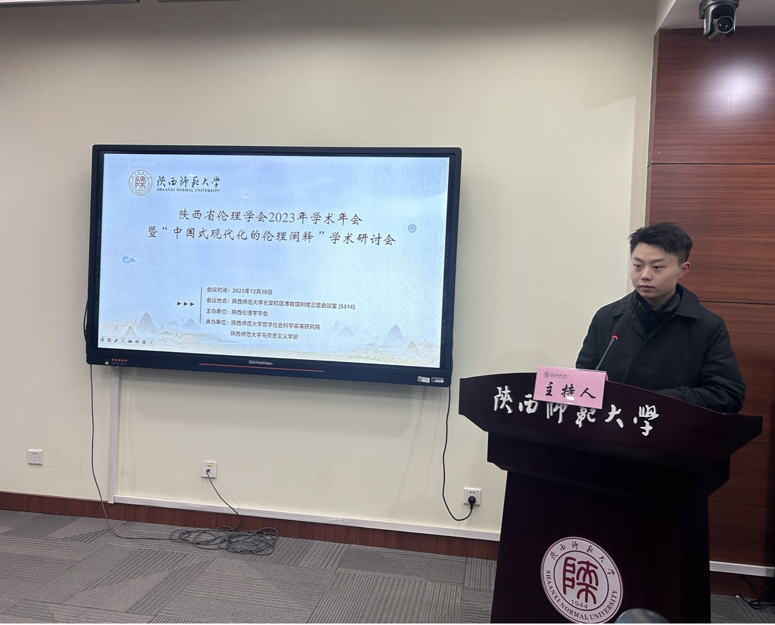 12月30日,由陕西省伦理学会、陕西师范大学共同主办了“中国式现代化的伦理阐释”学术研讨会,来自陕西省伦理学会、上海师范大学、西安交通大学、西北大学、陕西师范大学、西安外国语大学的专家及学者应邀参会。“伦理学与当代强军伦理设研究中心”主任陈丛兰教授、梁花副教授携研究生张湜钒参加了此次大会。